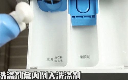 2、打開放洗滌劑的盒子,會看見有三個格子,將洗滌劑放在個專門放洗滌劑的盒子里。