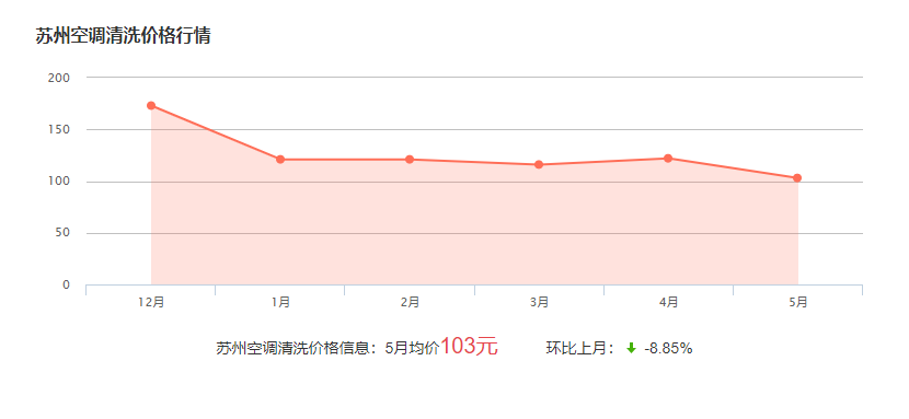 在蘇州要洗一臺空調(diào)的費用一般在60-300元不等,具體的費用與空調(diào)的型號和規(guī)格有關(guān)!需要師傅根據(jù)具體情況報價!下面為近幾個月蘇州空調(diào)清洗的價格波動圖(可供參考):