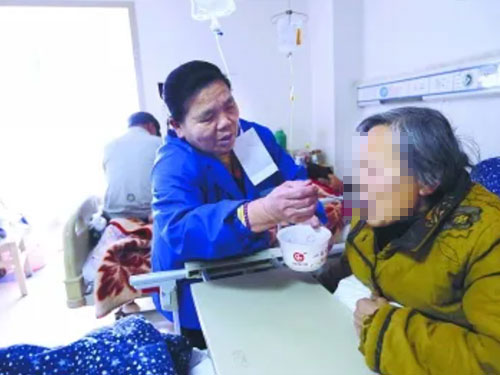 7、定時(shí)喂藥,給老人進(jìn)行健康和康復(fù)按摩。