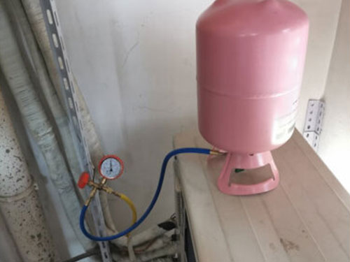 3、充氟過程中觀察壓力表指針變化。通過間斷地充氟使壓力表指針維持在0.45-0.5Mpa范圍內(nèi)。
