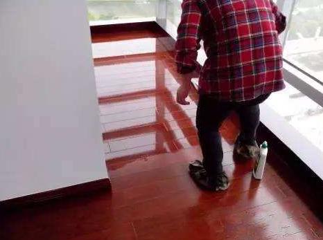 3、用中性清潔劑洗地機(jī)將地面清洗干凈。使用用力擰干的抹布進(jìn)行擦拭。地板表面、特別是溝槽部分、要仔細(xì)擦拭、不要?dú)埩粝礈靹。如殘留洗滌劑和水分、?huì)導(dǎo)致表面泛白、鼓脹。用干毛巾把地面擦干或者等其自然晾干。充分干燥地板表面和溝槽部的水分完全干燥為后方可打蠟。根據(jù)季節(jié)不同、所需時(shí)間也發(fā)生變化、但大致要花半天以上。如沒有經(jīng)過充分干燥、地板臘將不會(huì)緊密附著在地板表面、影響美觀、產(chǎn)生泛白現(xiàn)象。