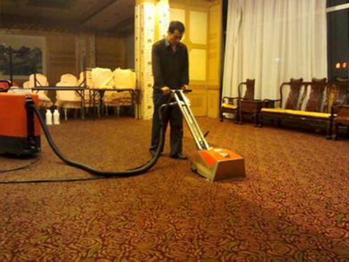 首先使用吸塵器將地毯上的灰塵清理干凈,然后進(jìn)行局部處理,用專用的清潔劑將地毯上邊的污漬單獨(dú)進(jìn)行處理稀釋地毯泡沫清潔劑,注入打泡箱。用手刷處理地毯邊緣、角落以及機(jī)器能夠推到的地方。用裝有打泡器、地毯刷的單盤掃地機(jī),以干泡刷洗地毯,然后用毯梳梳起地毯纖毛,這一步驟對(duì)纖維較長(zhǎng)的棉絨地毯很重要。最后用用吸塵器吸去污垢和干泡結(jié)晶體,等待地毯干燥。