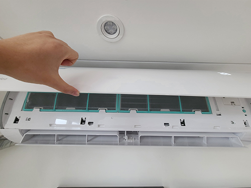 8、最后按上面的方法,反過來,下推,卡住,最后關(guān)閉好空調(diào)外殼就完成了。