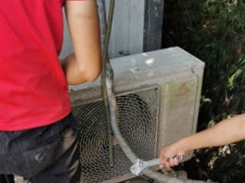 2、回收了空調(diào)制冷劑之后是在空調(diào)連接線的兩端做好標記,防止在裝機過程中導致線路連接錯誤;
