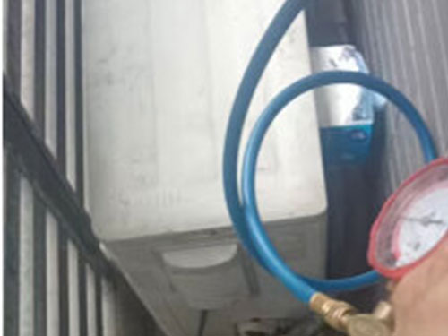 4、檢查氟利昂是否加入了空調(diào)里。先將空調(diào)開機,讓空調(diào)運行10左右,接著觀察三通維修閥上壓力表的壓力值,如果壓力值符合附表所示值,那么此次加氟工作順利完成,空調(diào)加氟準確。