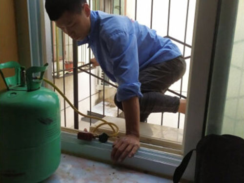 5、加氟完畢。對(duì)懷疑有泄漏點(diǎn)的空調(diào),要用洗滌精泡沫進(jìn)行檢查。