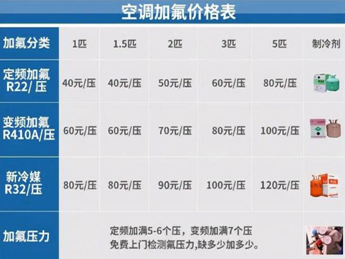 空調(diào)加氟收費標準:40元/壓,具體費用以師傅報價為準!