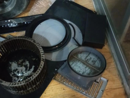 (2)拆卸油煙機各個部件,如油網(wǎng)、濾油杯、風(fēng)扇等。